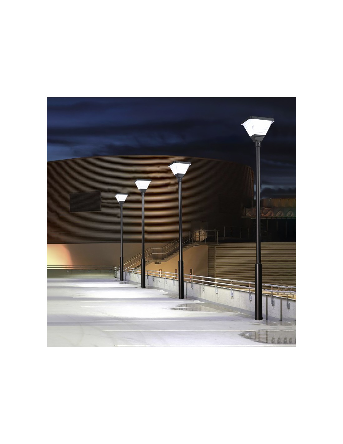 Equipped with a twilight sensor, the streetlight switches on automatically at dusk, providing fully autonomous lighting and generating no electricity costs. Installation is simple, requiring no connection to the power grid.