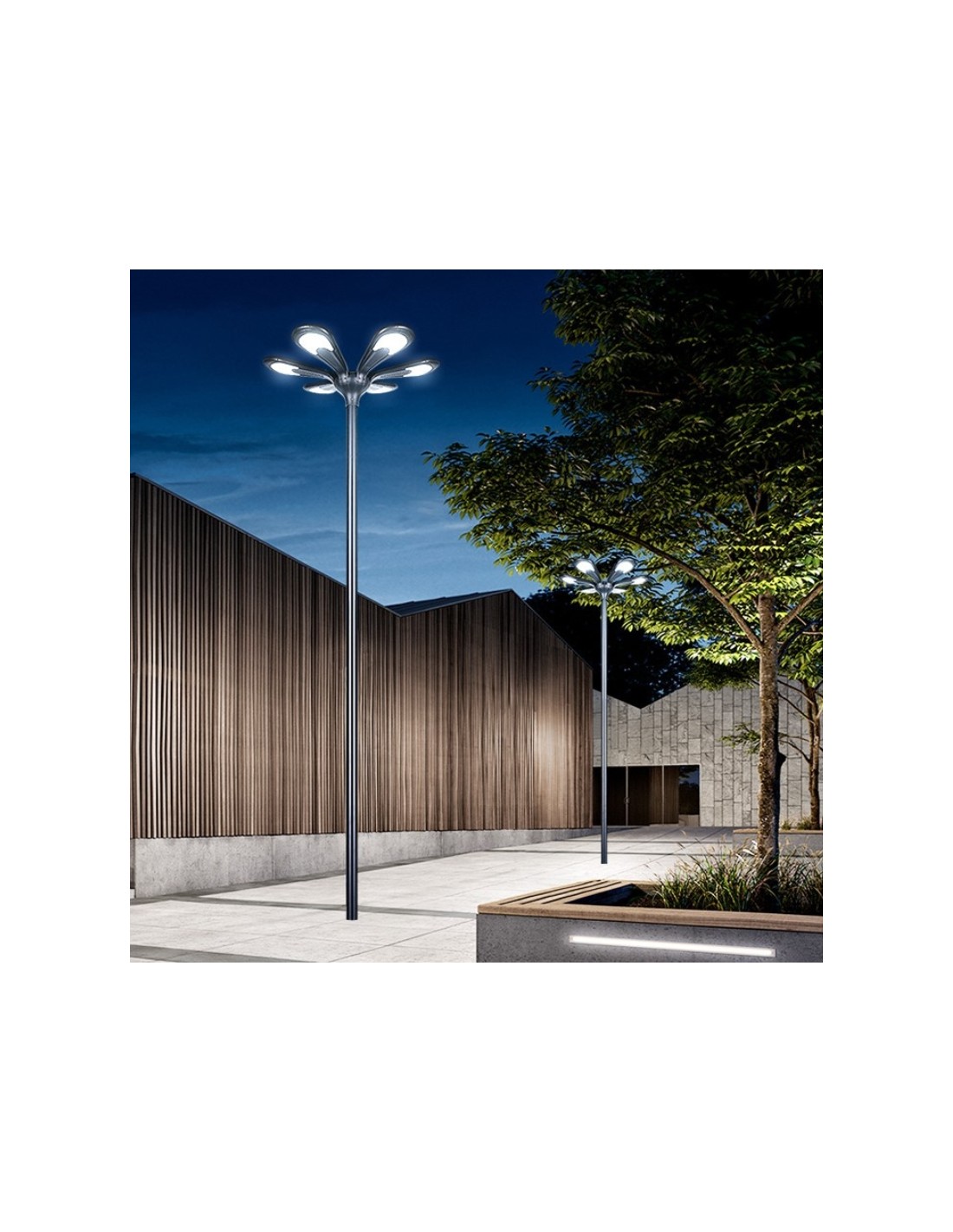 The solar lamp Medusa model of 6 branches of innovative conception with a unique design is equipped with a twilight sensor and operates completely without electrical assistance. Thanks to its 6 branches, it diffuses a very powerful light. It adapts to all types of poles, ideal for relamping.