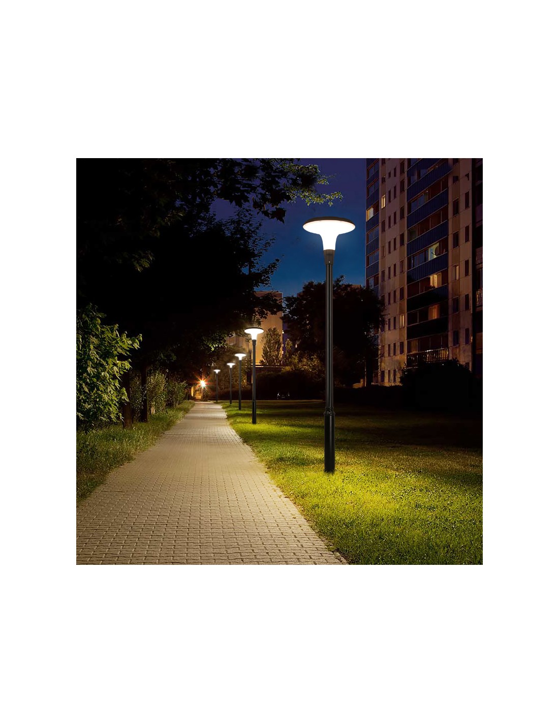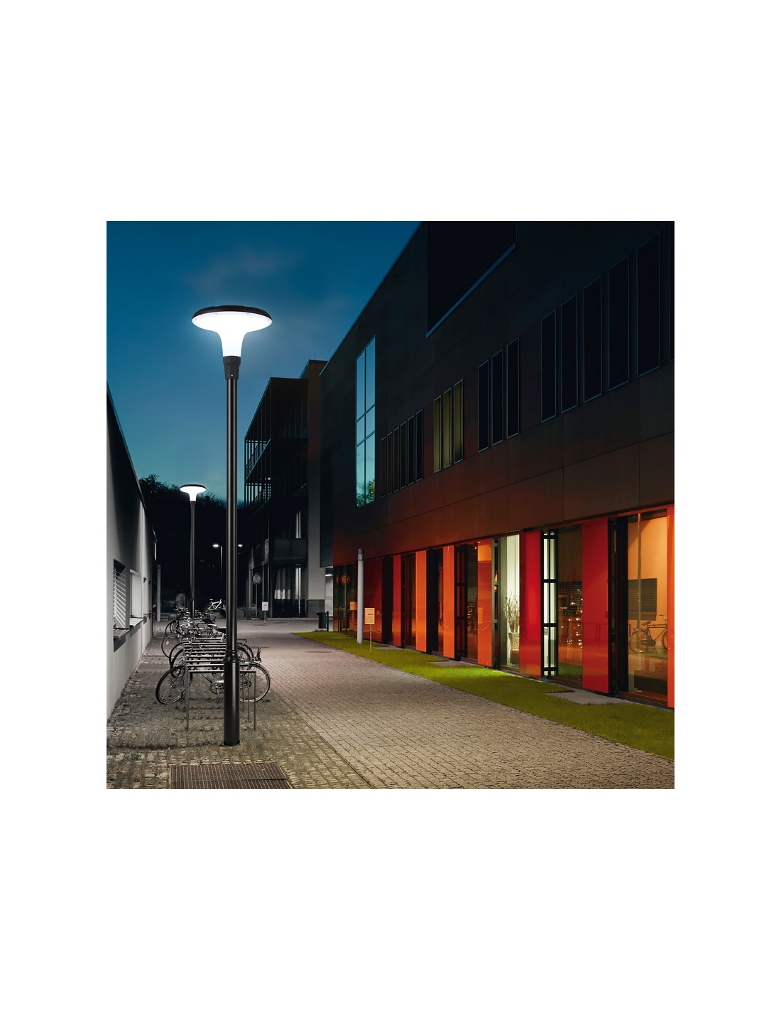 The solar street lamp Model Zita will embellish your spaces with an original design and a powerful light output thanks to its conception. This model adapts to all types of poles, ideal if you wish to replace only your traditional lamps by a solar lamp.