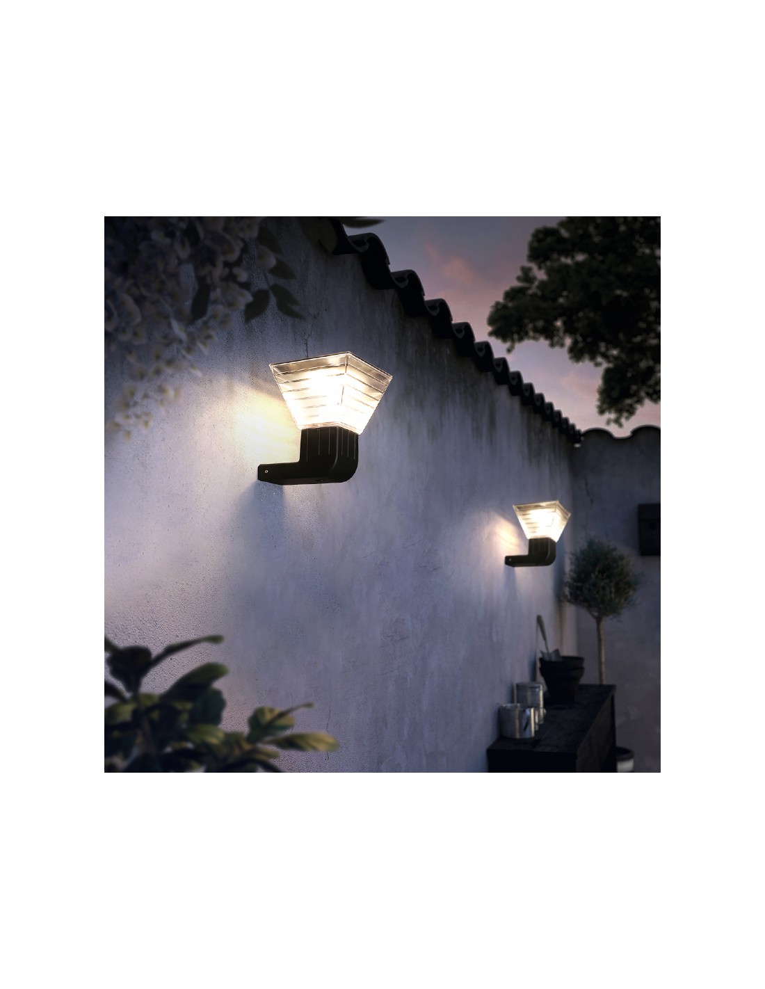 Cette applique solaire Maena offre un flux lumineux de 150 Lumens. Elle possède un panneau solaire en silicium monocristallin de 5W directement intégré qui permet à la lampe solaire de se recharger automatiquement la journée pour illuminer vos terrasses toute la nuit.