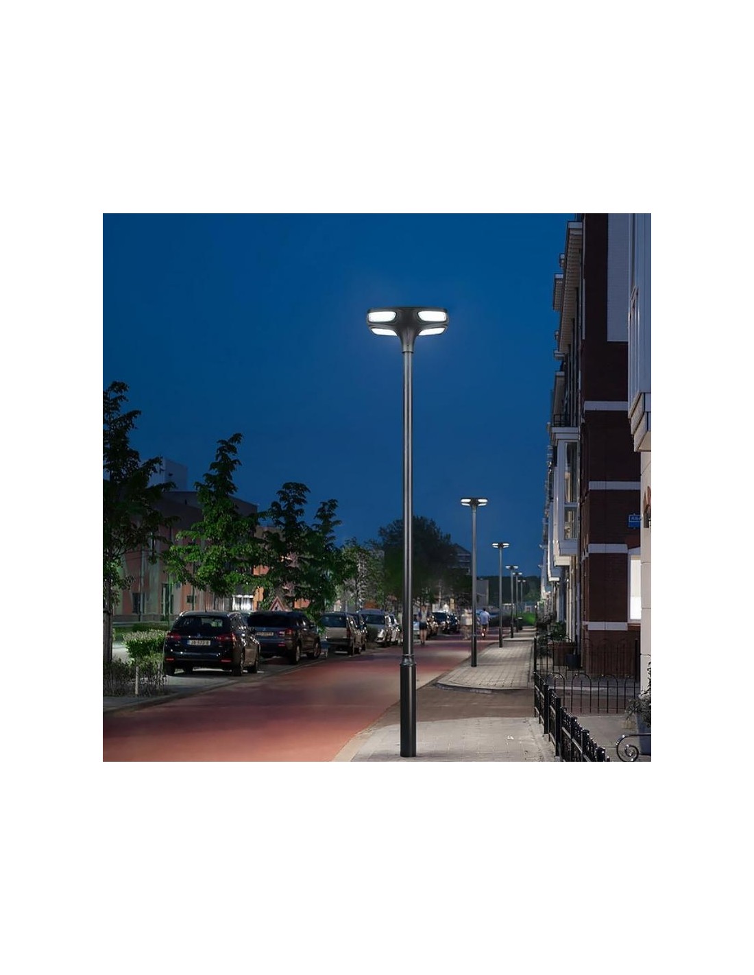 Conçu pour respecter les normes de réduction des nuisances lumineuses avec un éclairage orienté exclusivement vers le sol (ULOR <1%), le Lampadaire Madison s'intègre harmonieusement dans des environnements urbains.